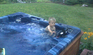Just back from the pool, i guess all that swimming gets a kid so hungry he forgets to put some clothes on after he takes off his suit.